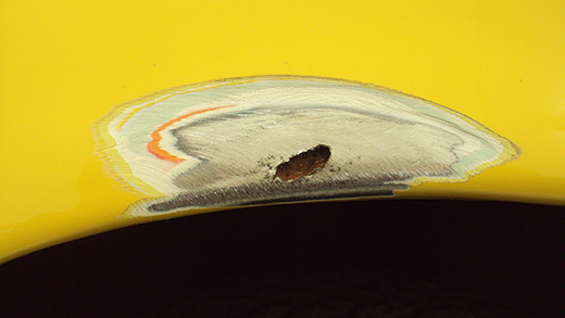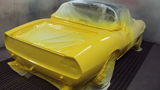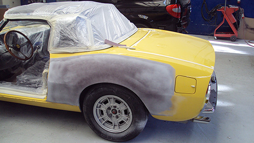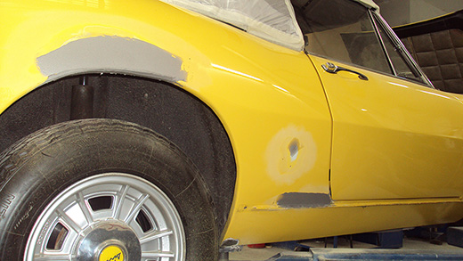 La teinte d’origine a été reproduite à l’identique grâce à notre laboratoire de colorimétrie, puis appliquée avec soin pour un rendu parfait. Résultat : une Fiat DINO remise à neuf, tout en respectant son authenticité.